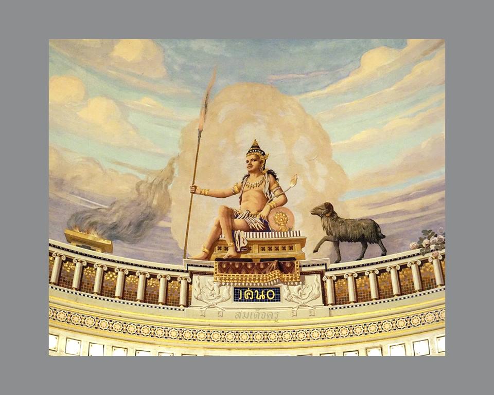 พระอัคนี ภาพเขียนด้านทิศเหนือของโดมภายในห้องพระบรรทม