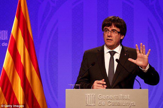 การ์ลัส ปุดจ์ดาโมน ปธน.กาตาลูญญา แถลงว่าเราต้องเคารพประชามติของเสียงส่วนใหญ่ในแคว้นกาตาลูญญา ที่ต้องการขอแยกตัวจากสเปน แต่เราก็ต้องคำนึงถึงความมั่นคง ความเป็นเอกภาพ ดังนั้นจึงขอเลื่อนการประกาศการตัดสินใจครั้งนี้ออกไปก่อน โดยขอไปเจรจากับสเปนอีกรอบโดยในขณะนี้แคว้นกาตาลูญญายังขอตัดสินใจไม่ประกาศเอกราชจากสเปน ยืนยันอยู่ร่วมกันต่อผ่านการเจรจา ยึดสันติภาพและประชาธิปไตยเป็นที่ตั้ง